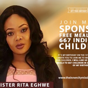 Hello My Name Is Rita & My Birthday Is April 15th. Please join me to send potions/Food to 100 Children of the innercity mission for children, For my birthday celebration. Please let's do this together, help me to see this dream comes to realities. Thank you so very much, God bless you.