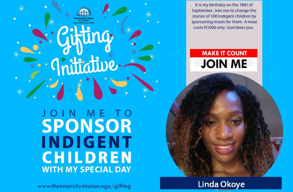 It is my birthday on the 18th of September. Join me to change the stories of 100 indigent children by sponsoring meals for them. A meal costs N1000 only. God bless you.