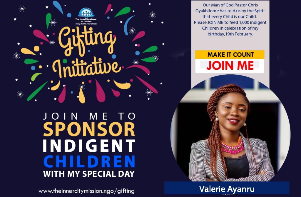 Our Man of God Pastor Chris Oyakhilome has told us by the Spirit that every Child is our Child. Please JOIN ME to feed 1,000 indigent Children in celebration of my birthday,19th February. By giving at least N1,000 or $3