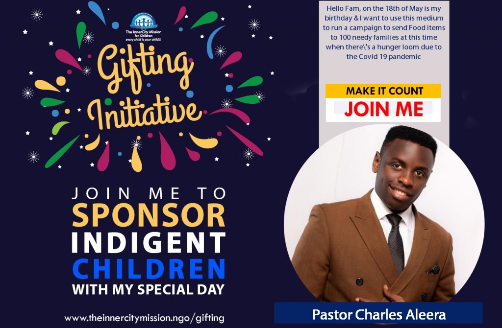 Hello Fam, on the 18th of May is my birthday and I want to use this medium to run a campaign to raise funds through the InnerCity Missions to send Food Items/Packages to a 100 needy families at this time when there's a hunger loom, due to the Covid 19 pan