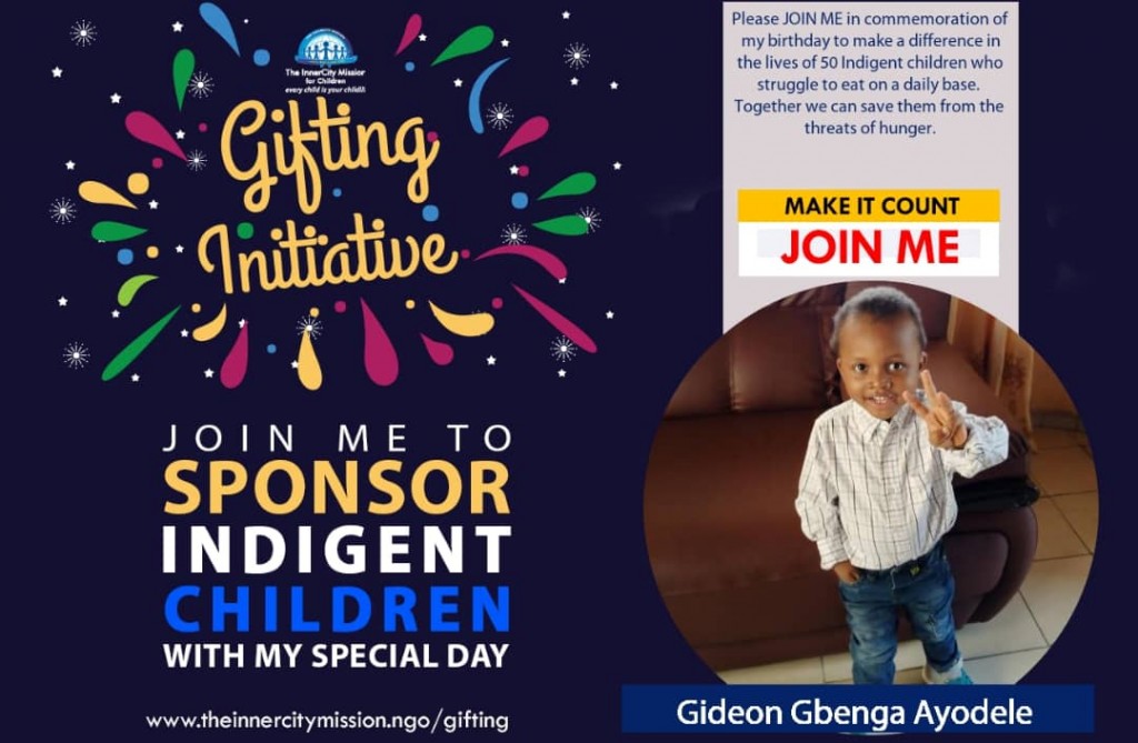 Please JOIN ME in commemoration of my birthday to make a difference in the lives of 50 Indigent children who struggle to eat on a daily base. Together we can save them from the threats of hunger.