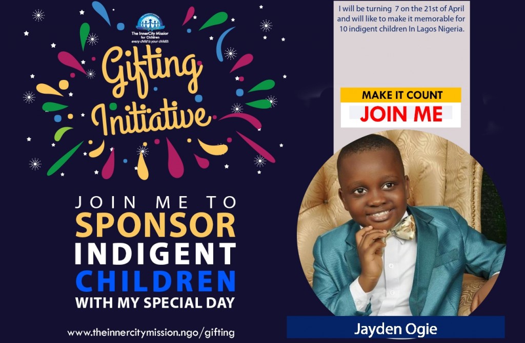 My name is Jayden Ogie. I will be turning 7 on the 21st of April and will like to make it memorable for 10 indigent children in Lagos, Nigeria as i sponsor their education.