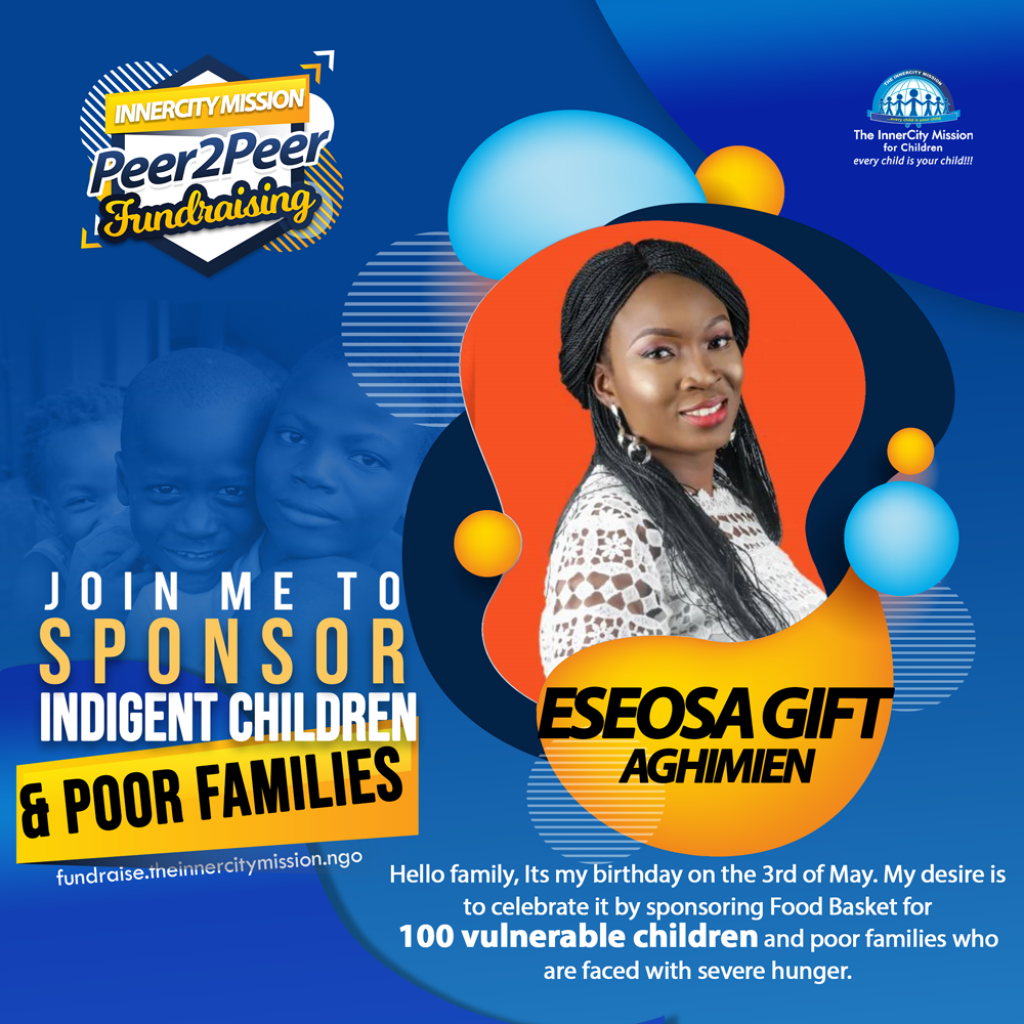 Hello family, Its my birthday on the 3rd of May. My desire is to celebrate it by sponsoring Food Basket for 100 vulnerable children and poor families who are faced with severe hunger.