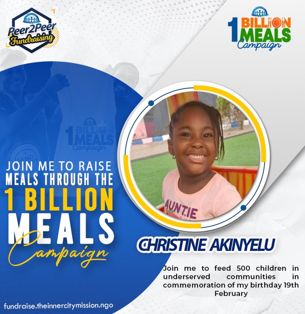 Join me to feed 500 children in underserved communities. Together we can put smiles on the faces of the needy and food in their belly. Sponsor a child with N1000/$1.50 Thank you for your support.
