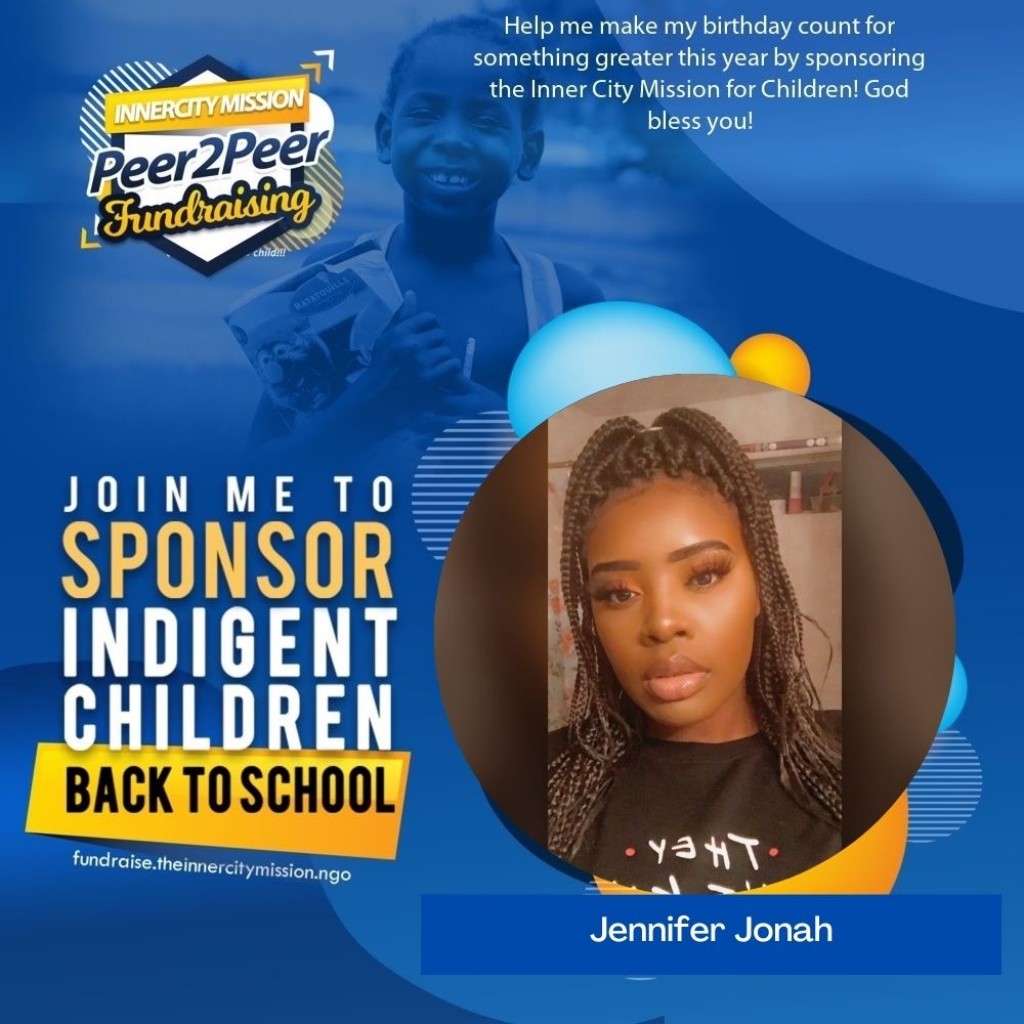 Help me make my birthday count for something greater this year by sponsoring the Inner City Mission for Children! Together, we can make an impact on their lives and ensure that these children can get an education and build a better future for themselves.
