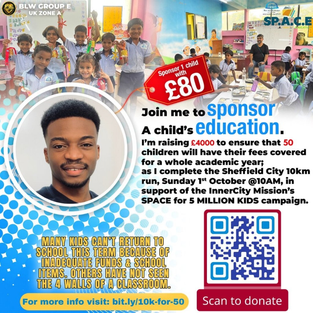 I am supporting 50 indigent children for a whole academic year as I participate in the Sheffield City 10km run. Join me to sponsor a child's education! Every child is your child!
