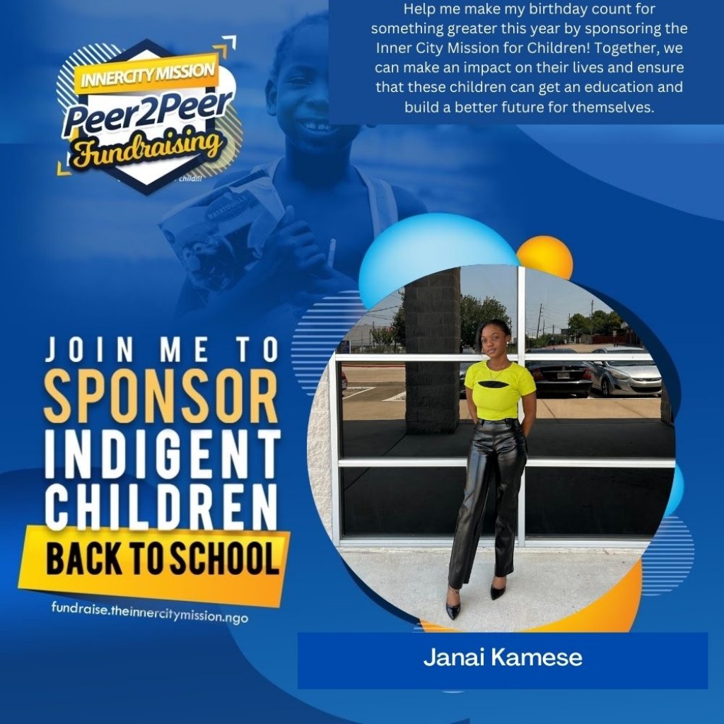 Help me make my birthday count for something greater this year by sponsoring the Inner City Mission for Children! Together, we can make an impact on their lives and ensure that these children can get an education and build a better future for themselves.