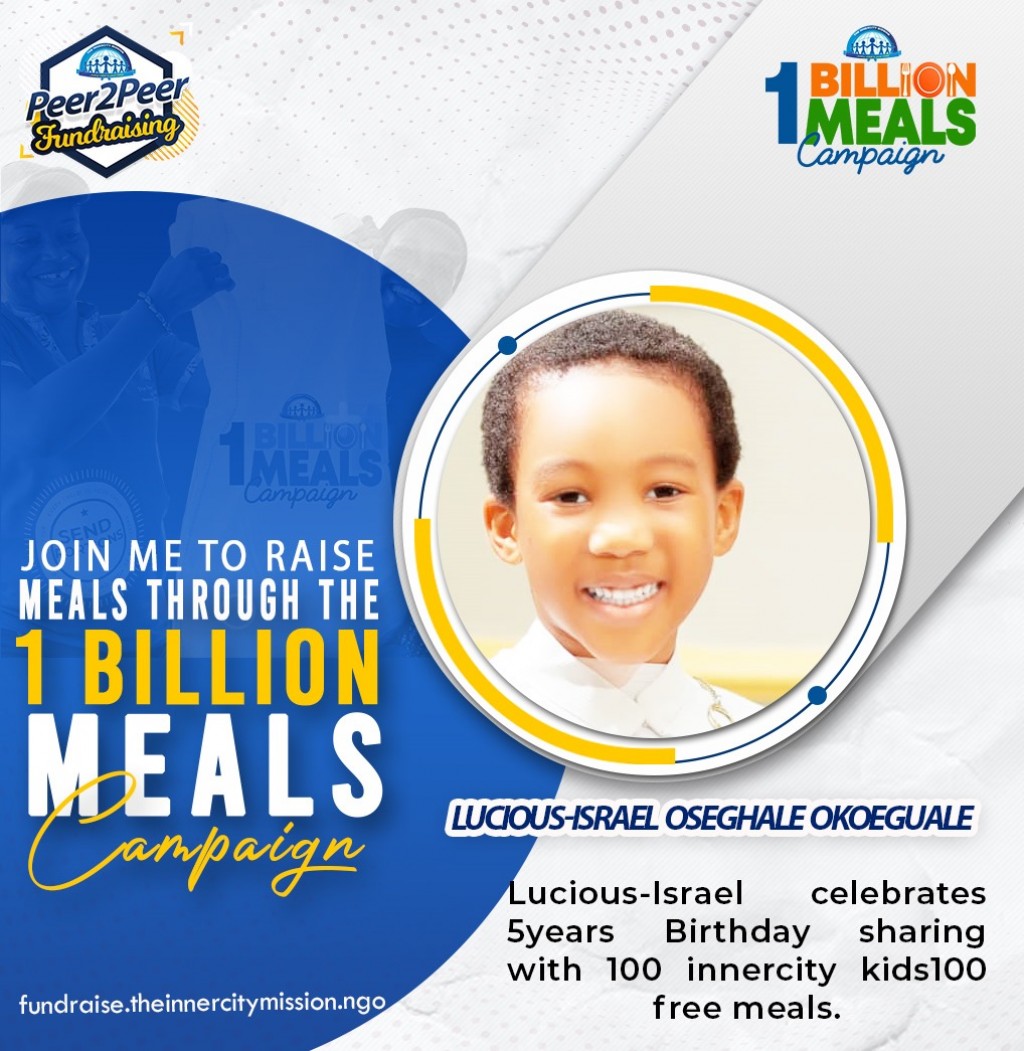 Join Lucious-Israel to feed 100 indigent children in celebration of his 5th birthday, 11th of November. Your support will help put smiles on their faces and save them from the threat of hunger. Thank you.