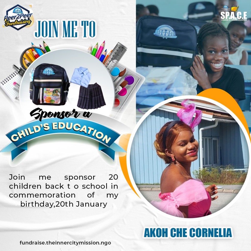 Join me to sponsor School supplies such as backpacks, notebook and School uniform kit for 20 children going back to school in commemoration of my birthday,20th January.