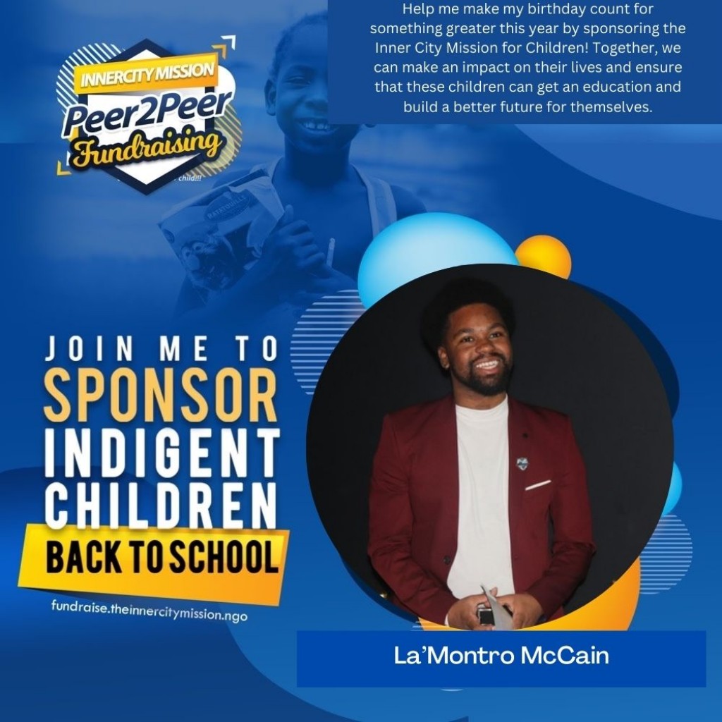 Help me make my birthday count for something greater this year by sponsoring the Inner City Mission for Children! Together, we can make an impact on their lives and ensure that these children can get an education and build a better future for themselves.