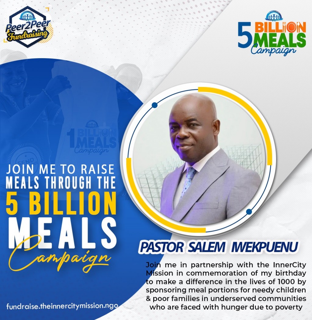 Join me in partnership with the InnerCity Mission in commemoration of my birthday to make a difference in the lives of 1000 by sponsoring meal portions for needy children & poor families in underserved communities who are faced with hunger due to poverty