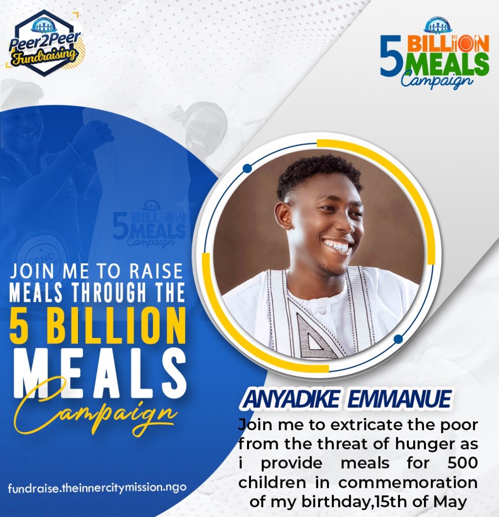 Join me to extricate the poor from the threat of hunger as i provide meals for 500 children in commemoration of my birthday,14th of May. A child is Counting on YOU.