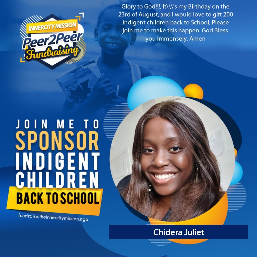 It's my Birthday on the 23rd of August, and I would love to gift 200 indigent children back to School, Please join me to make this happen. God Bless you immensely. Amen