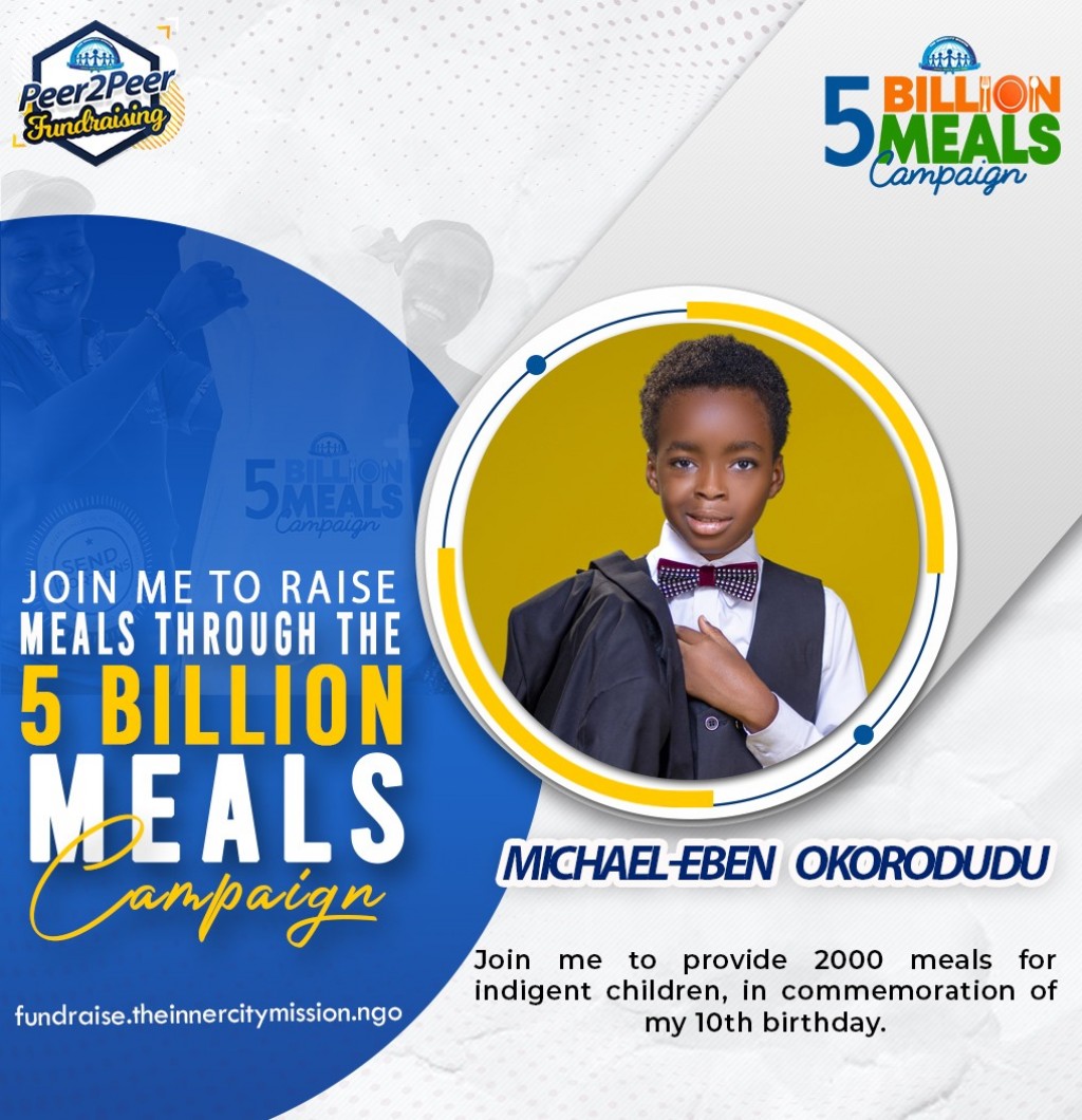 Join me to provide meals for 2000 indigent children in commemoration of my 10th borthday, October 23rd. Your sponsorship would help put smiles on their faces. Thank you.