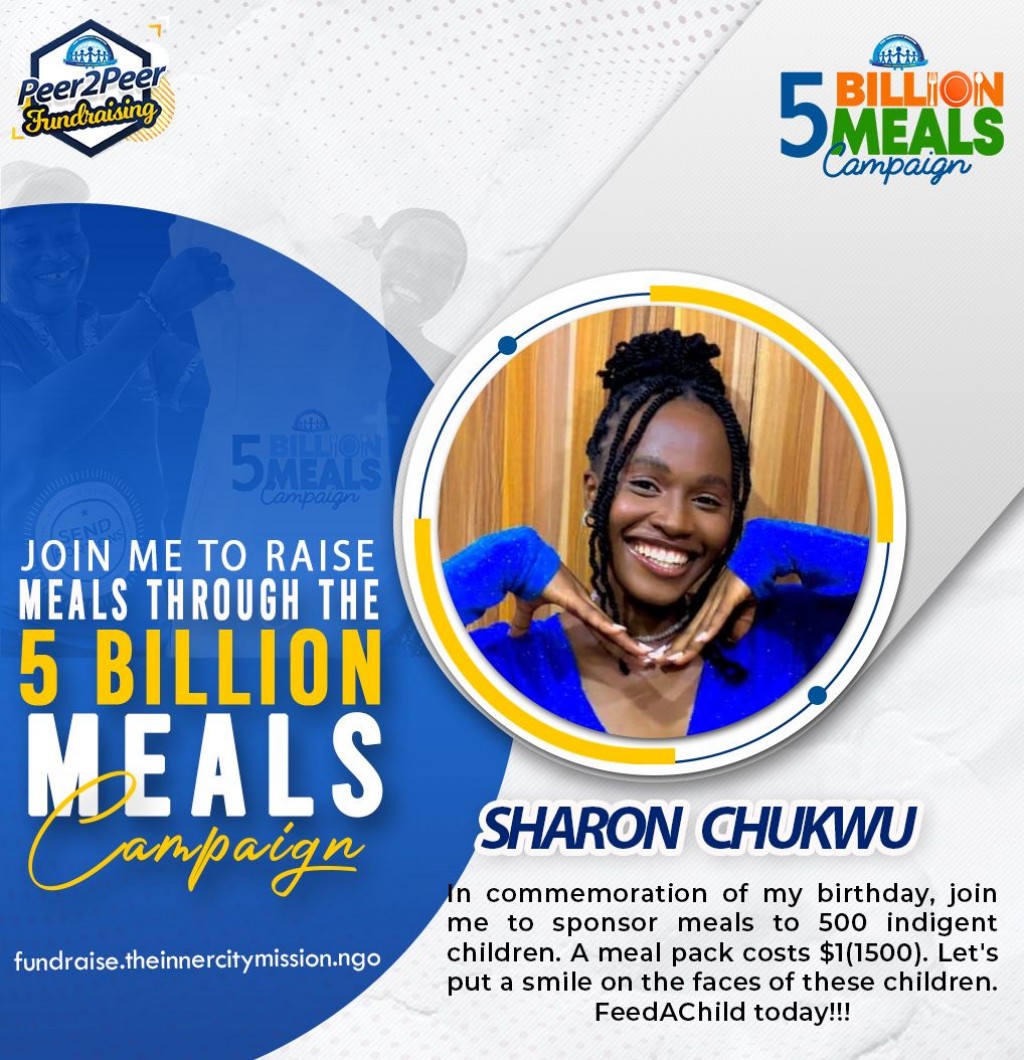 In commemoration of my birthday, join me to sponsor meals to 500 indigent children. A meal pack costs $1(1500). Let's put a smile on the faces of these children. FeedAChild today!!!