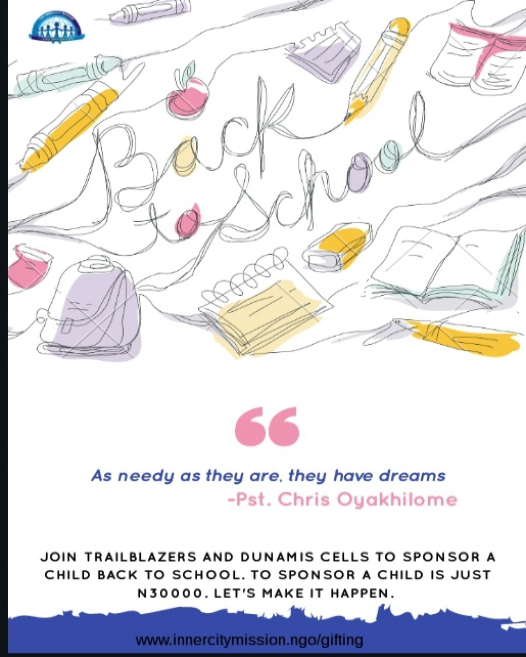 'As needy as they are, they have dreams'- Rev. Chris Oyakhilome. Poverty shouldn't be a life sentence, the new academic session has begun, let's send children back to school this September.