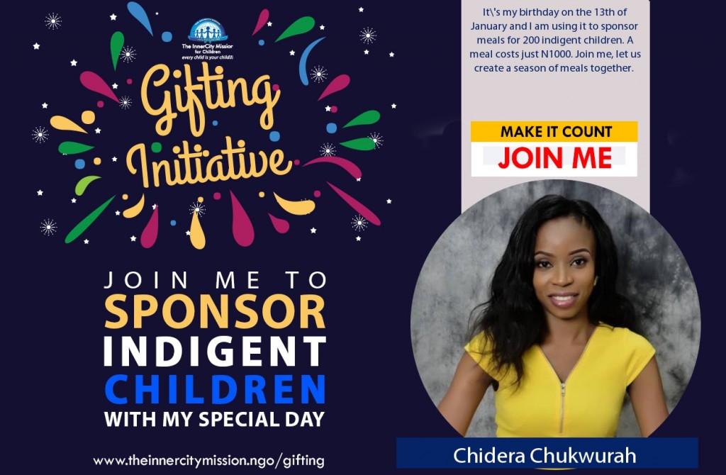 It's my birthday on the 13th of January and I am using it to sponsor meals for 200 indigent children. A meal costs just N1000. Join me, let us create a season of meals together.