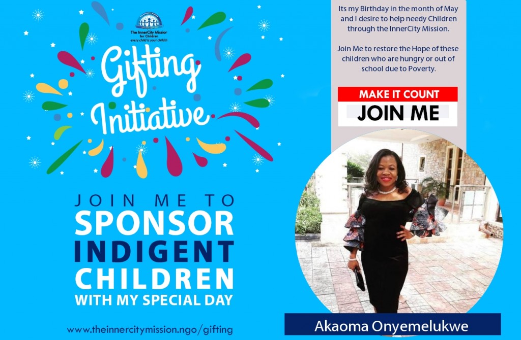 Its my birthday in May & I desire to help the needy through the InnerCity Mission. There are millions of children suffering due poverty. I want to make a Diffrence by starting TODAY.