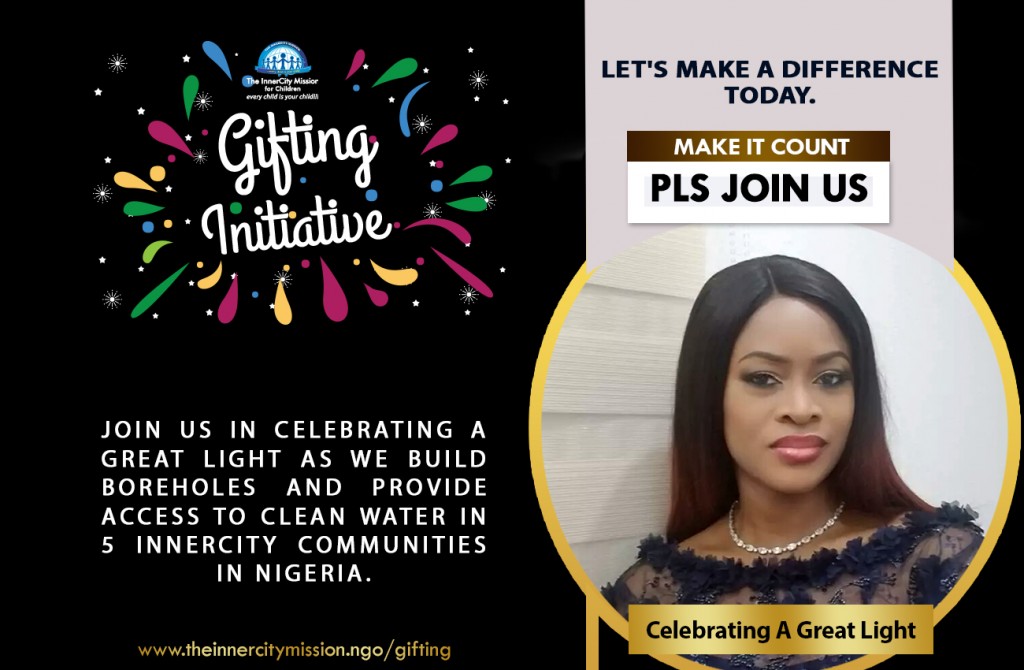 Join us in celebrating a great light as we build boreholes and provide access to clean water in 5 Innercity Communities in Nigeria. Let's make a difference today.