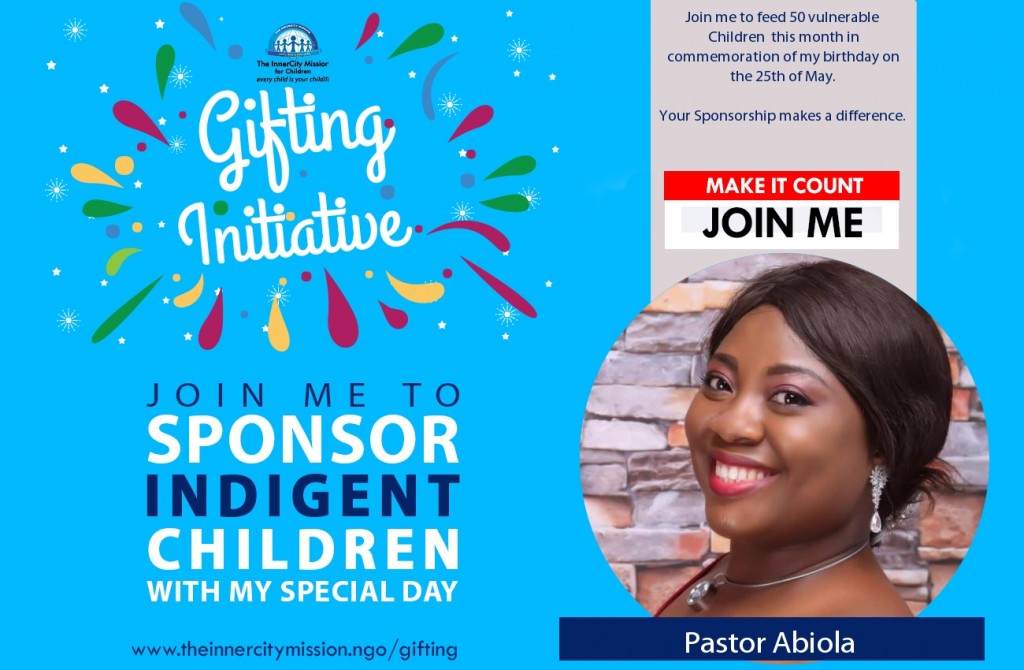 My name is Pastor Abiola Akinyelu. It's my birthday on the 25th of May 2019. I would like you to join me in sponsoring 50 meals to indigent children.. Thank you.